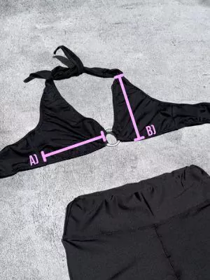 Corpiño confeccionado en lycra premium con detalle de arandela de metal en el centro