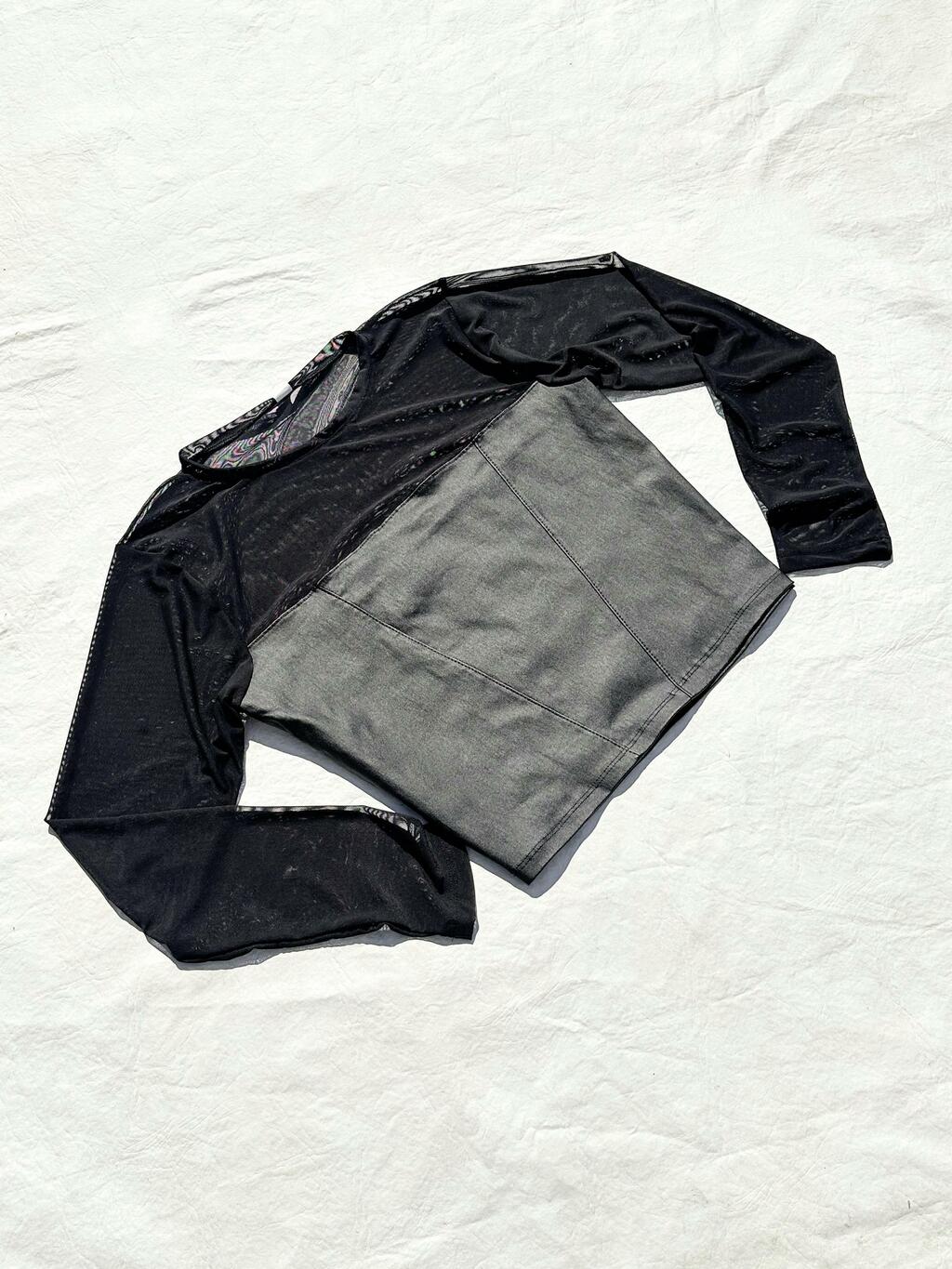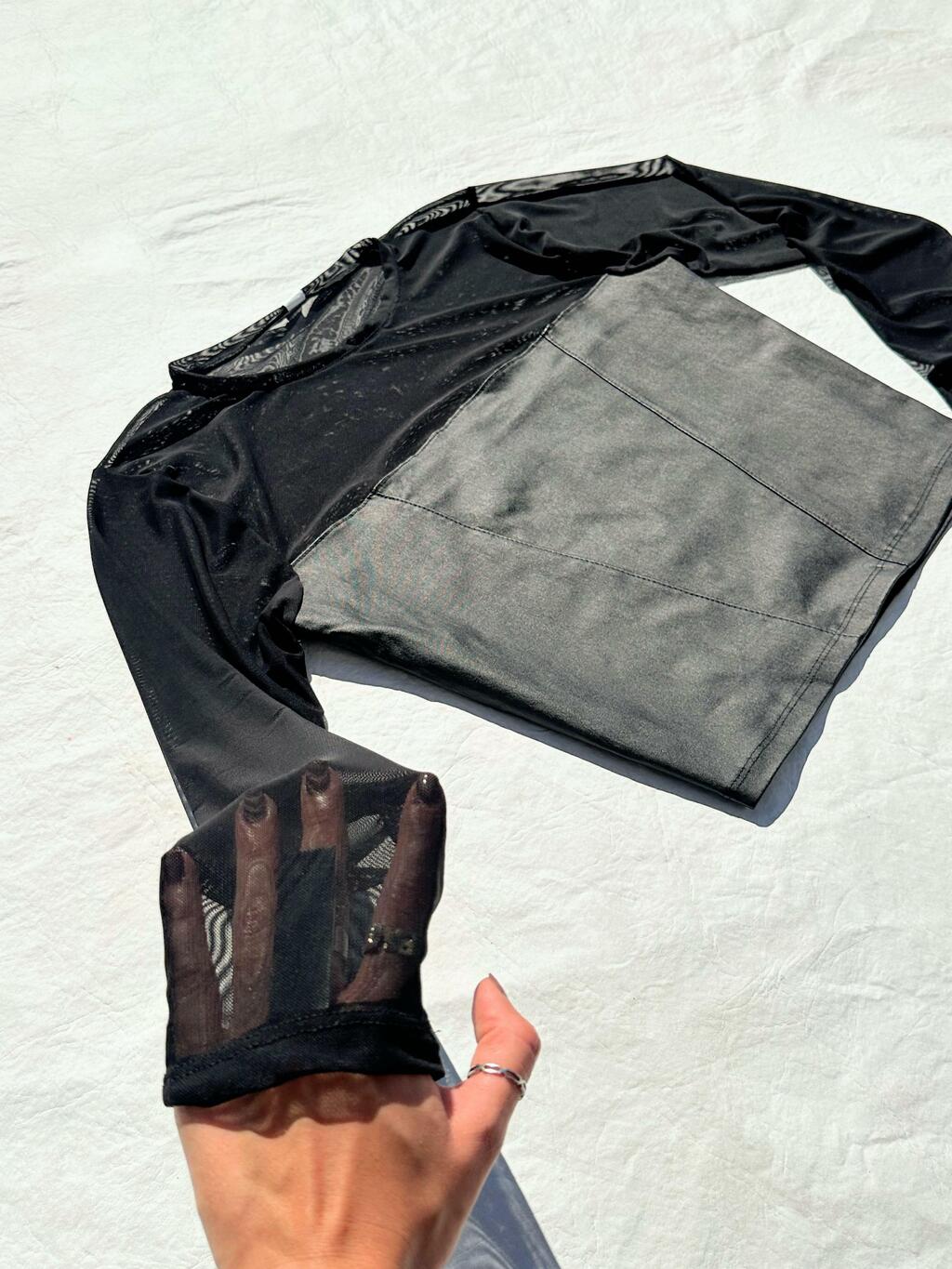 Top manga larga confeccionado en engomado, con mangs en microtul