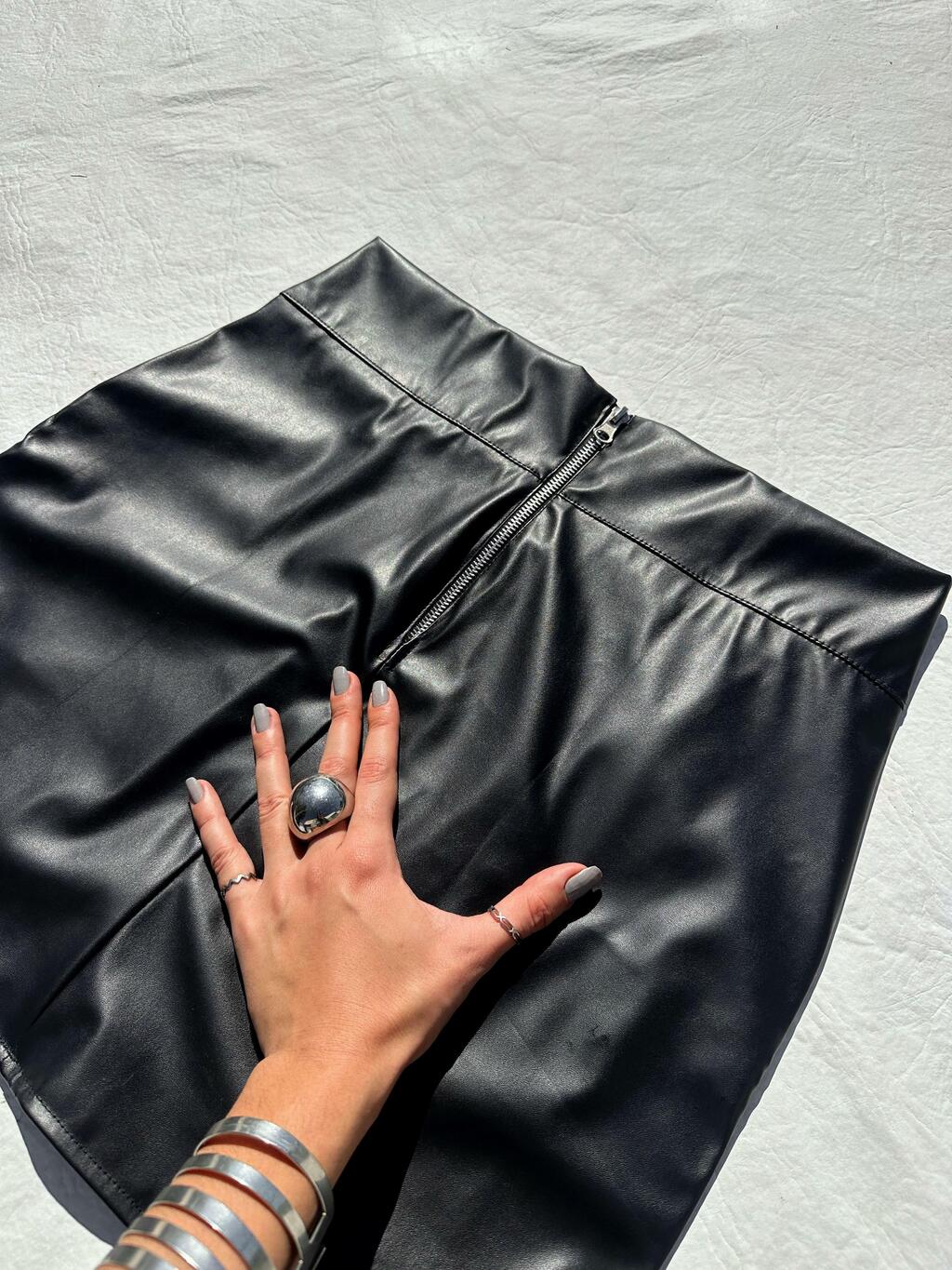 Pollera engomada confeccionada en cuerina, con detale de cierre tracero para un mejor calce.